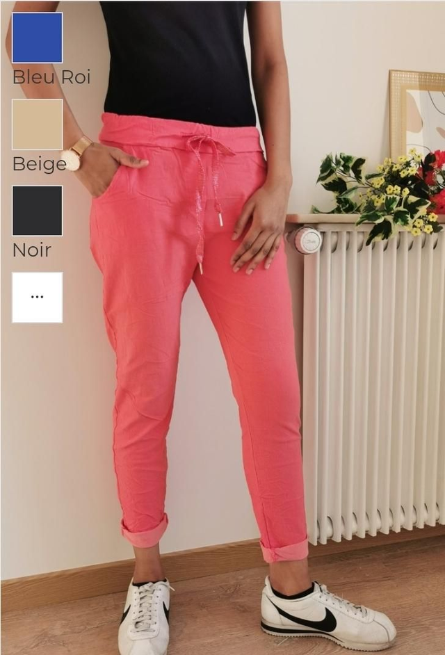 pantalon magique hyper elasthane s adapte à toutes les morphologie du 38 au 48 . élastique a la taille et cordon de serrage